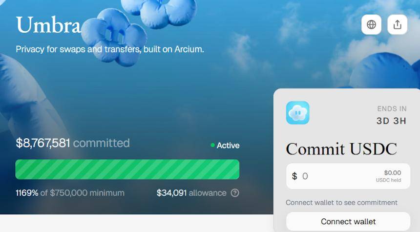 10 月 6-8 日,Solana 隐私协议 Umbra 在 MetaDAO 的 futarchy 平台上进行 ICO,原定筹资$75 万,最终获得$880 万超募 1100% 左右。