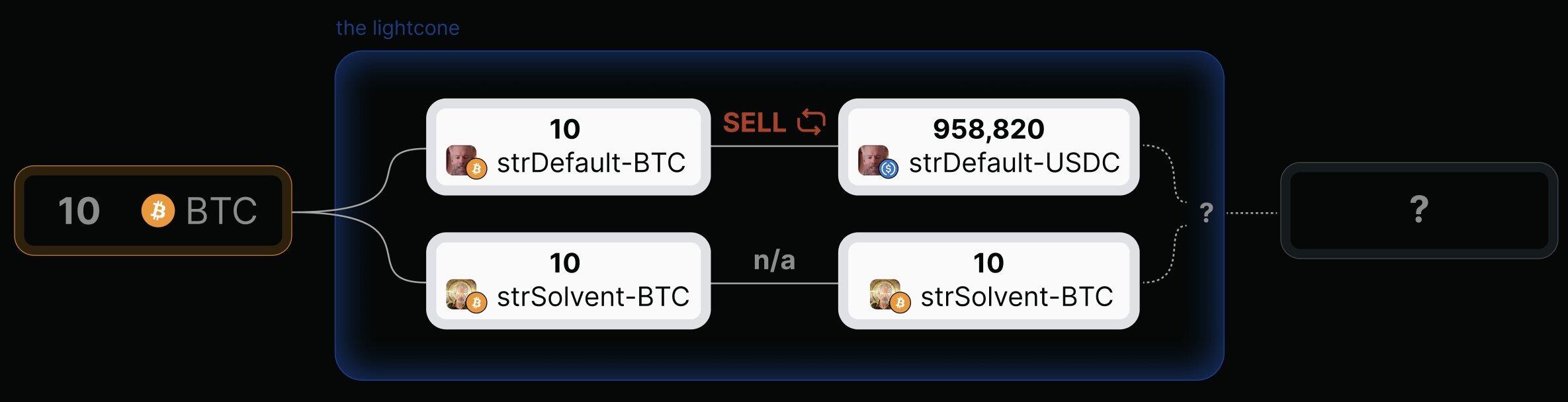 如果违约发生,他们的 strDefault-USDC 将变成真正的 USDC。他们成功地进行了对冲,并在事件发生之前卖出了比特币;如果没有违约发生,他们的 strSolvent-BTC 可以兑换成他们最初的比特币。他们仍然持有多头头寸,并且对冲操作没有产生任何成本。