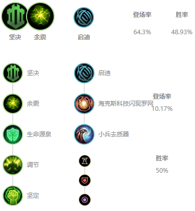 推荐思路:余震可以在你定身住一名敌方英雄之后可以获得双抗的提升,随后这些提升的护甲会爆炸,并对周围敌方英雄造成伤害。
