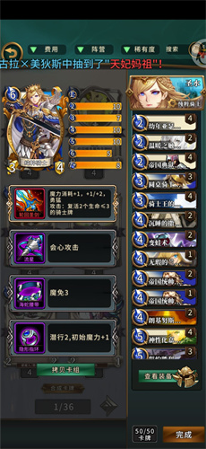 构卡思路:大量低费骑士配合小亚瑟和加哈拉德实现铺场,圆桌总管作为6费终端,天启白作为7费终端,都有终结游戏的能力;