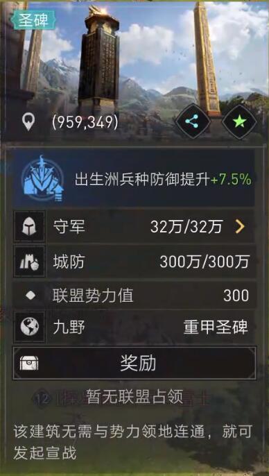 每个出生州的资源特点和兵种特性都是不一样的,在出生州如果联盟拥有圣碑同时还培育了一队非常厉害的出生州兵种,那么会相得益彰,因为圣碑可以给出生州兵种很大的攻防加成,大大提升兵种属性。
