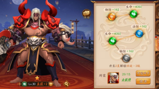 2.可通过升级进行武将属性的提升,武将等级上限与主角等级是一致的;