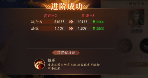 3.还可以使用进阶来提升武将的实力,进阶后可提升武将的基本属性同时可以解锁武将的新技能;