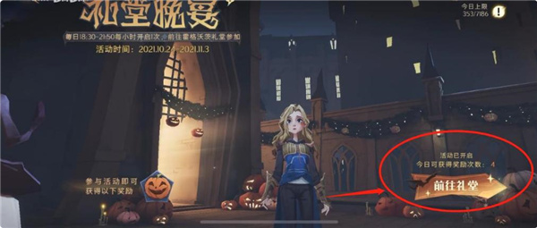 2、万圣派对共有五个活动,点击其中的礼堂晚宴便可直接进入;