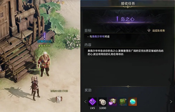 2、岛之心任务:与岛屿上的“奥佩罗爷爷”NPC对话,接取“岛之心任务”;