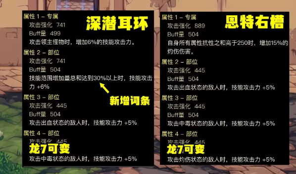 8、【恩特右槽】:“灼烧15%+3个异常5技攻”或者“灼烧15%+龙7可变+2个异常5技攻”。