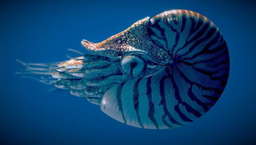 鹦鹉螺的内部壳体由许多相互连通的小室组成,排列成螺旋状,就像一座精巧的旋转楼梯。这些小室会随着鹦鹉螺的生长不断增加,新陈代谢过程中它还能调节腔室内的气体和液体比例,从而实现浮力控制,在不同深度的海水中自由升降。