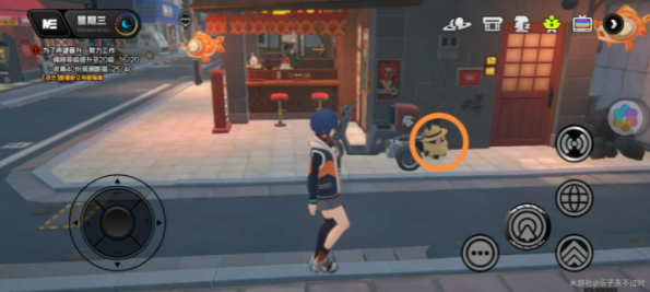 在晚上的时候,点击导航,选择拉面店后点击传送。到拉面店后,向右走。发现一只寻宝邦布我们靠近它并与之对话,当我们修理好它,奖章就到手了。