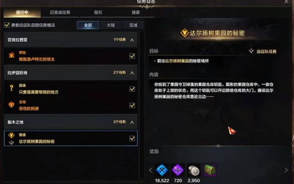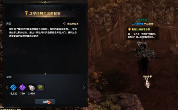 2、在地图上击败精英怪可以获得任务物品,然后使用任务物品可以接取到名为“达尔扬树果园的秘密场所任务”;