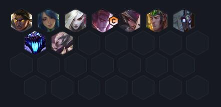 速8阵容,前期不D牌,成型需要较多高费卡,如果前期血少,打完狼升7人口可以D,找厄斐琉斯