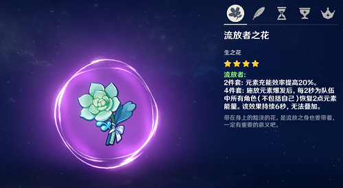 4件套:基于元素充能效率的25%,提高元素爆发造成的伤害,至多通过这种方式获得75%提升;