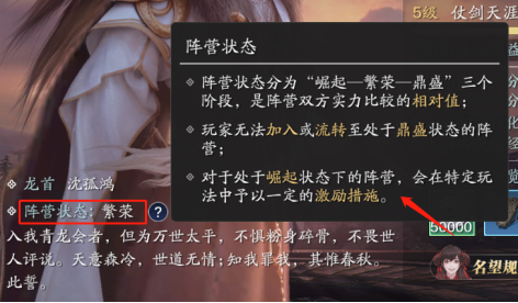 阵营状态分为崛起、繁荣和鼎盛三个状态,处于崛起状态的阵营可以获得系统给予的激励措施;