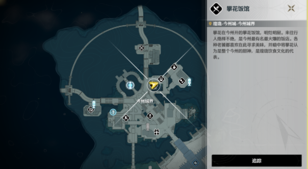 传送到瑝珑-今州城-今州城界,然后就可以找到【攀花饭馆】了。
