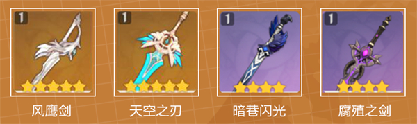 天空之刃:提供较高的基础攻击力和元素充能效率,是五星单手剑中较为均衡的选择。是较为优质的五星武器选择。