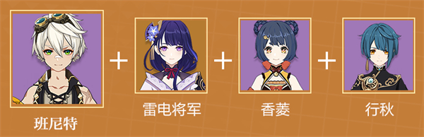 【雷神国家队】班尼特、雷电将军、香菱、行秋