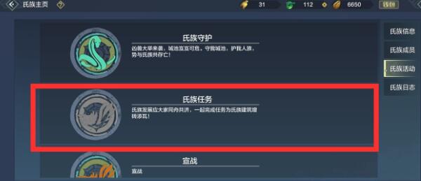 5.氏族可以向其他的氏族进行宣战,获得胜利的氏族将会活儿其他氏族额资金,失败的话将会被扣除氏族资金,只要是参与氏族战的成员都可获得奖励。
