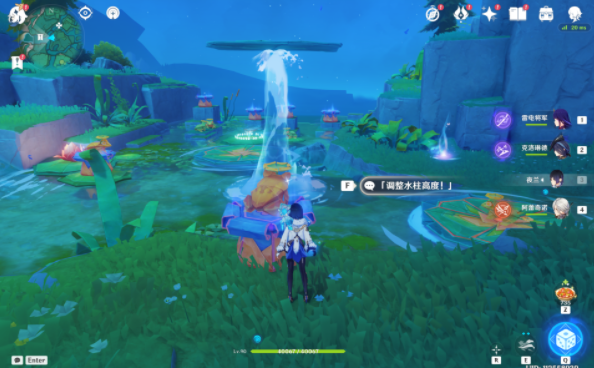 2、来到点位处,找到下图中的橙色纸蛙,选择「调整水柱高度!」,使荷叶下降;