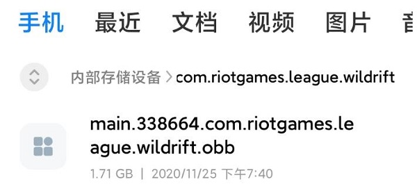3.找到下载好的OBB文件,一般在浏览器里,点击他直接定位到他的根目录,也就是从手机自带的文件夹里找到obb文件;