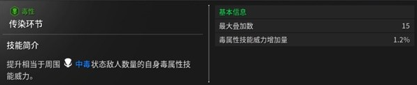 传染链:提升相当于弗蕾娜技能中毒状态敌人数量的毒属性技能威力。