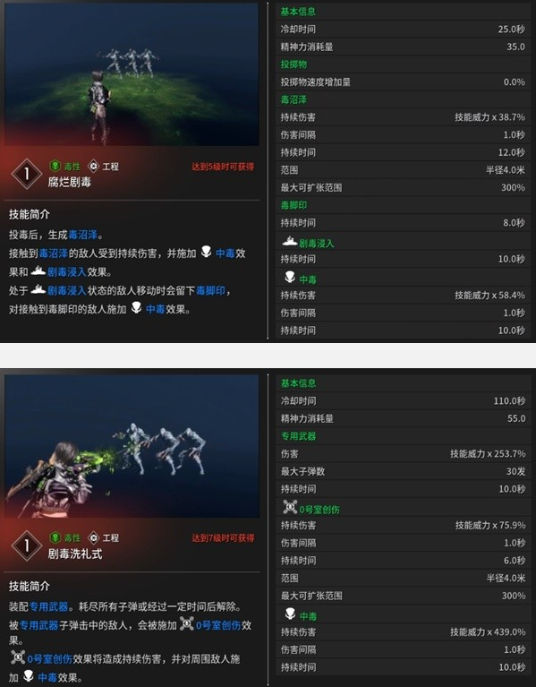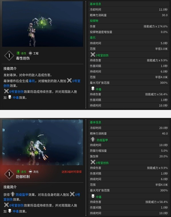 ①毒性创伤(工程):投出毒,对被击中的敌人造成伤害并对周围的敌人施加0号室创伤。