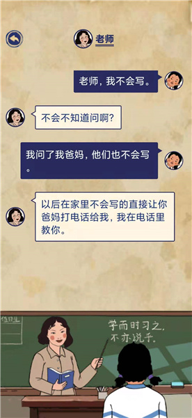 老师:以后在家里不会写的直接让你爸妈打电话给我,我在电话里教你。