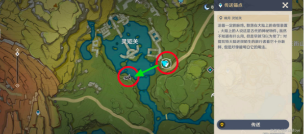 1、来到灵矩关右下方的传送锚点,然后选择右边的画片