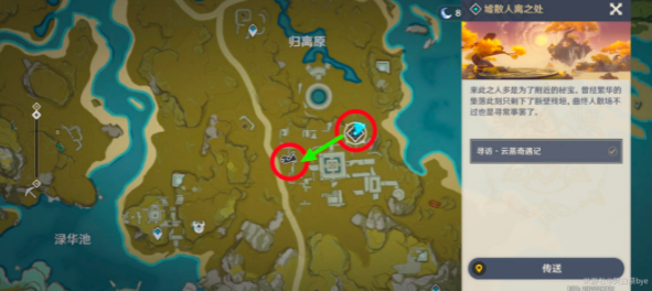1、来到墟散人离之处的传送锚点,然后选择中间的画片