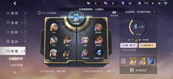 2、龙晶祈福每隔一段时间就会更新,有当期的专属皮肤;