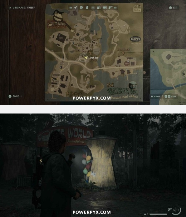 前往咖啡世界,在北边地图边缘的无线电塔后方。