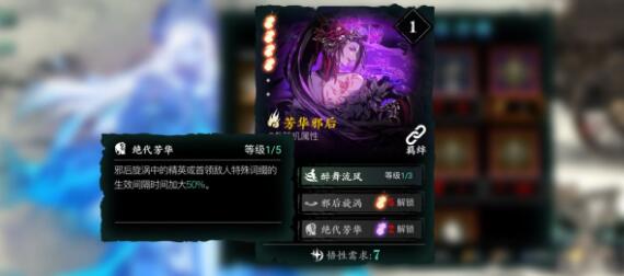 绝技:1-醉舞流风,2-邪后漩涡,3-绝代芳华