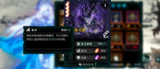 绝技:1-杀气沸腾,2-魔剑,3-无情