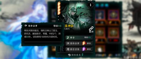 绝技1-妙手,绝技2-续明法事,绝技3-助手召集
