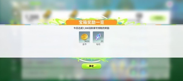通过完成每日任务获得活跃度,分别在100、500、1000、1500活跃时可以开领取一次每日任务宝箱奖励,每个宝箱中都有数量可观的金币与其他物资奖励。