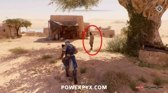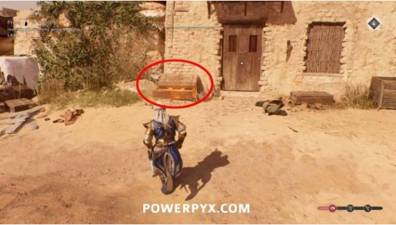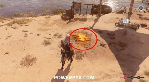 1、这个位置是在地图最北边,河边尽头的房子处,玩家在这里只要与门口的女人交谈即可开启传说;
