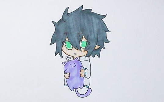 5.衣服是浅灰色,猫咪整个是紫色,然后雷狮可爱的简笔画就完成啦。