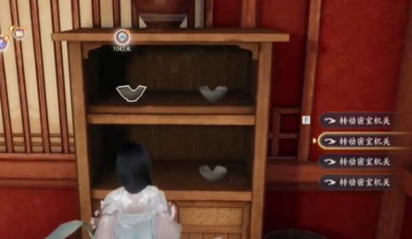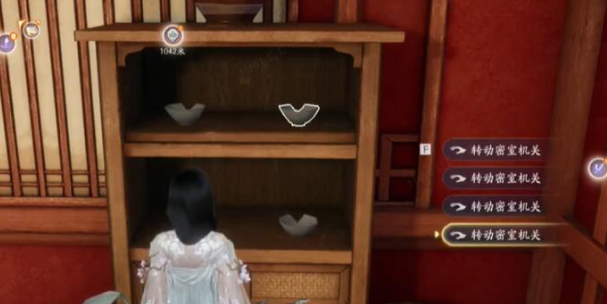 3、根据纸条上的提示,需要去调整柜子里的碗,靠近之后会有交互键;