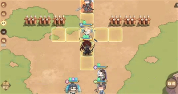 让弓兵跟枪兵先行动站好位置,一回合出发多次连携;