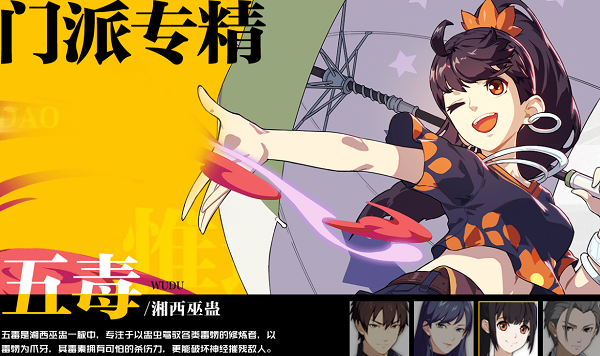 五毒属于输出型专精,以控制毒蛊而闻名于世,她的技能分为了毒和蛊,两种技能都可以对敌人造成持续伤害。但这两种技能处在同一个敌人身上会发生爆炸造成叠加伤害。