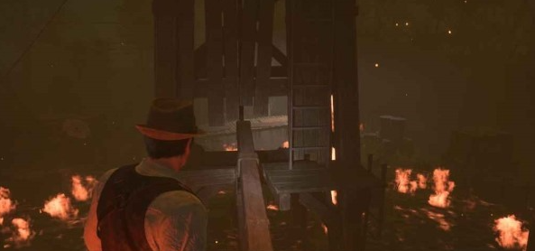 1、在第二章剧情中,玩家来到油泵处,拉动梯子旁边的控制杆并往上爬;