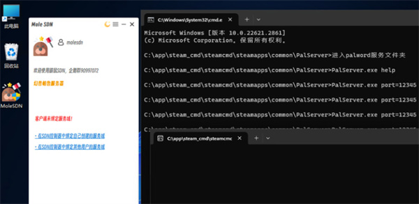 在前面 运行了联机服务的电脑上下载和运行MoleSDN,完成登录。
