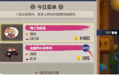 比如我们选择只做一份寿司,选了自动供应在尾部就会有AUTO的标识,只要客人一直来,食材充足,就不用担心菜不够。