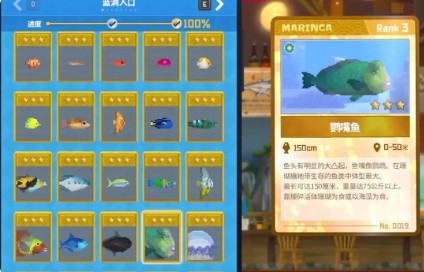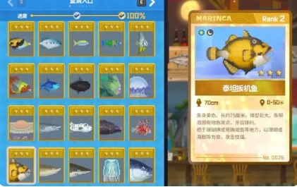 选择前期我们主要活动在0-50米这个深度,而且氧气容量,背包这些都很垃圾,我推荐抓鹦嘴鱼和泰坦扳机鱼。