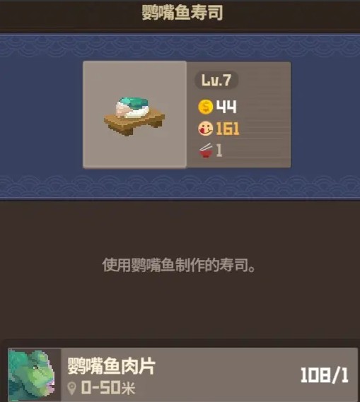 做鹦嘴鱼寿司即可,升到5-6级即可,不要去抓鲨鱼,鲨鱼太重了,真不划算。泰坦扳机鱼看到全部抓,后面我们中期的华美寿司套餐需要它。