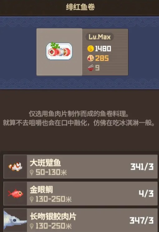 鲨鱼派对绯红鱼卷在员工比利15级时解锁,材料全是鱼,都可以养殖,而且份数多,价格也很高。关键这道菜还是鲨鱼属性,可以再鲨鱼派对上用。本身比利也属于特别强的服务员,后期分店也用得上。