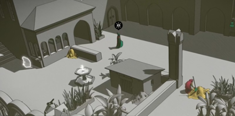 在巴别塔圣歌中,玩家通过第一关后会进入第二关。首先需要修复眼前的院子,中间有一个显示器。完成和小朋友捉迷藏的任务后,可以找到隐藏入口。来到池塘区域时,从左上角进入并完成推床小游戏,在树下能获得一枚硬币。