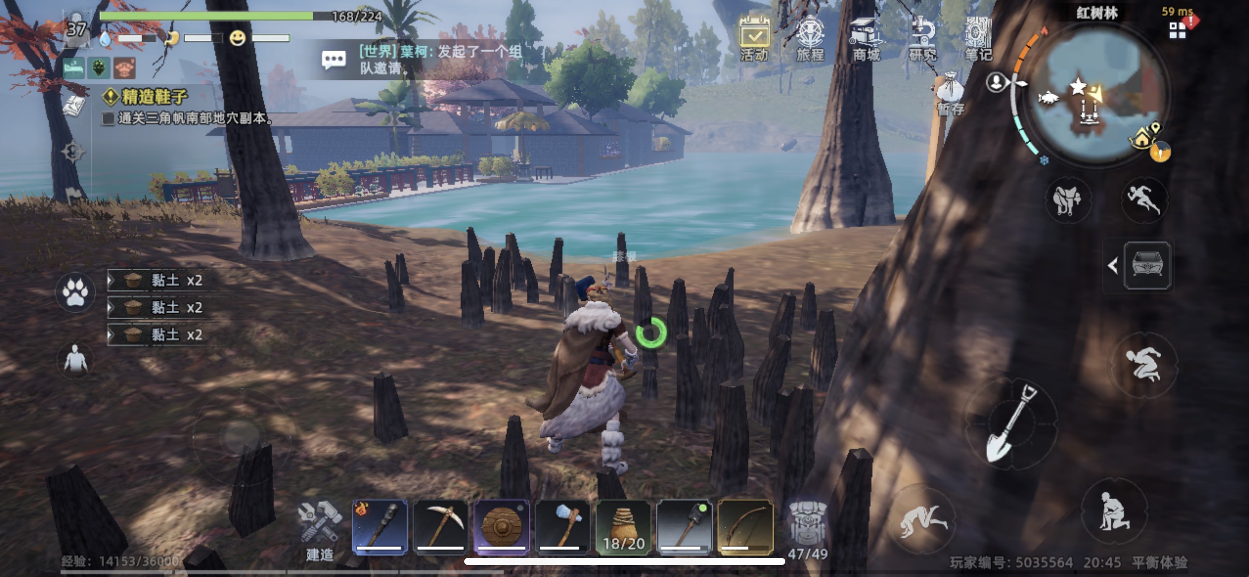 另外「黏土」区在地图上标出来了,枯树根区域那里挖是必出