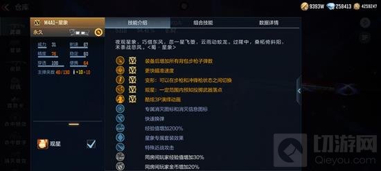 M4A1-星象作为三国系列T0的武器,M4A1-星象一直都是主流神器,这把武器有着观星:一定范围内预知投掷武器落点;同时还拥有更快瞄准速度和快速换弹的专属技能。