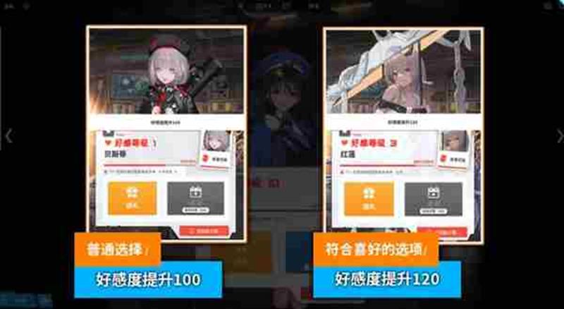 咨询时,选择符合妮姬喜好的选项可额外增加好感度,普通选择能提升一百好感度,而符合喜好的选项则能提升一百二十好感度。送礼也是提升好感度的有效途径,妮姬喜爱的礼物会标注红心并且置顶,赠送喜爱的礼物会大幅增加好感度。