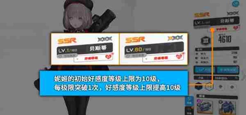 妮姬的好感度等级上限初始为十级,每极限突破一次,好感度等级上限提高十级。隶属企业为艾力席恩、米西利斯和泰特拉的妮姬,极限突破三星后好感度等级上限提升至最高。