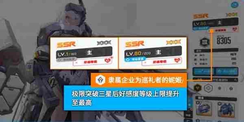 隶属企业为巡礼者的妮姬,极限突破三星后好感度等级上限同样提升至最高。好感度不仅可以解锁个人花絮,还可以提高能力值,指挥官们记得每日和妮姬们进行互动。